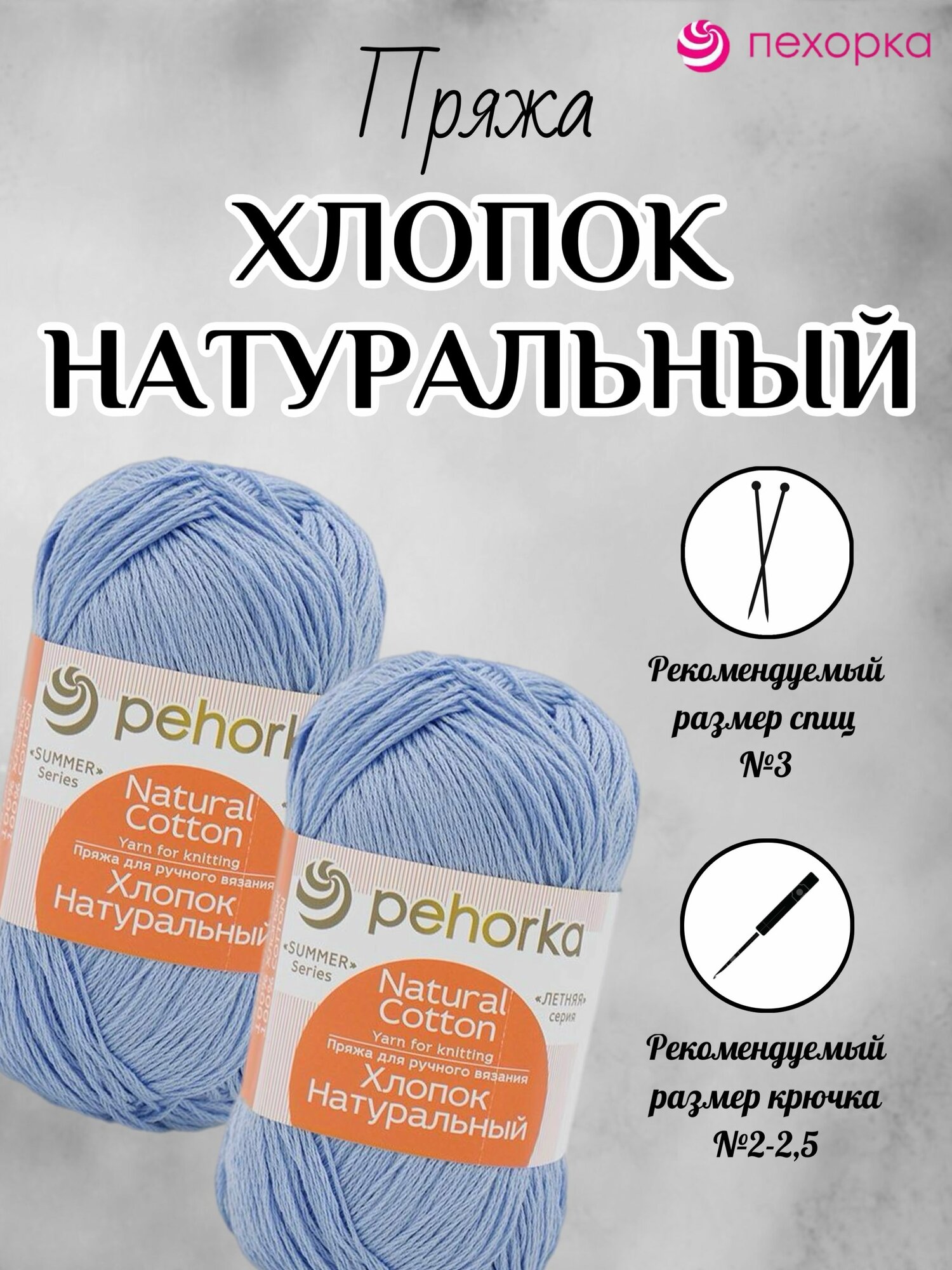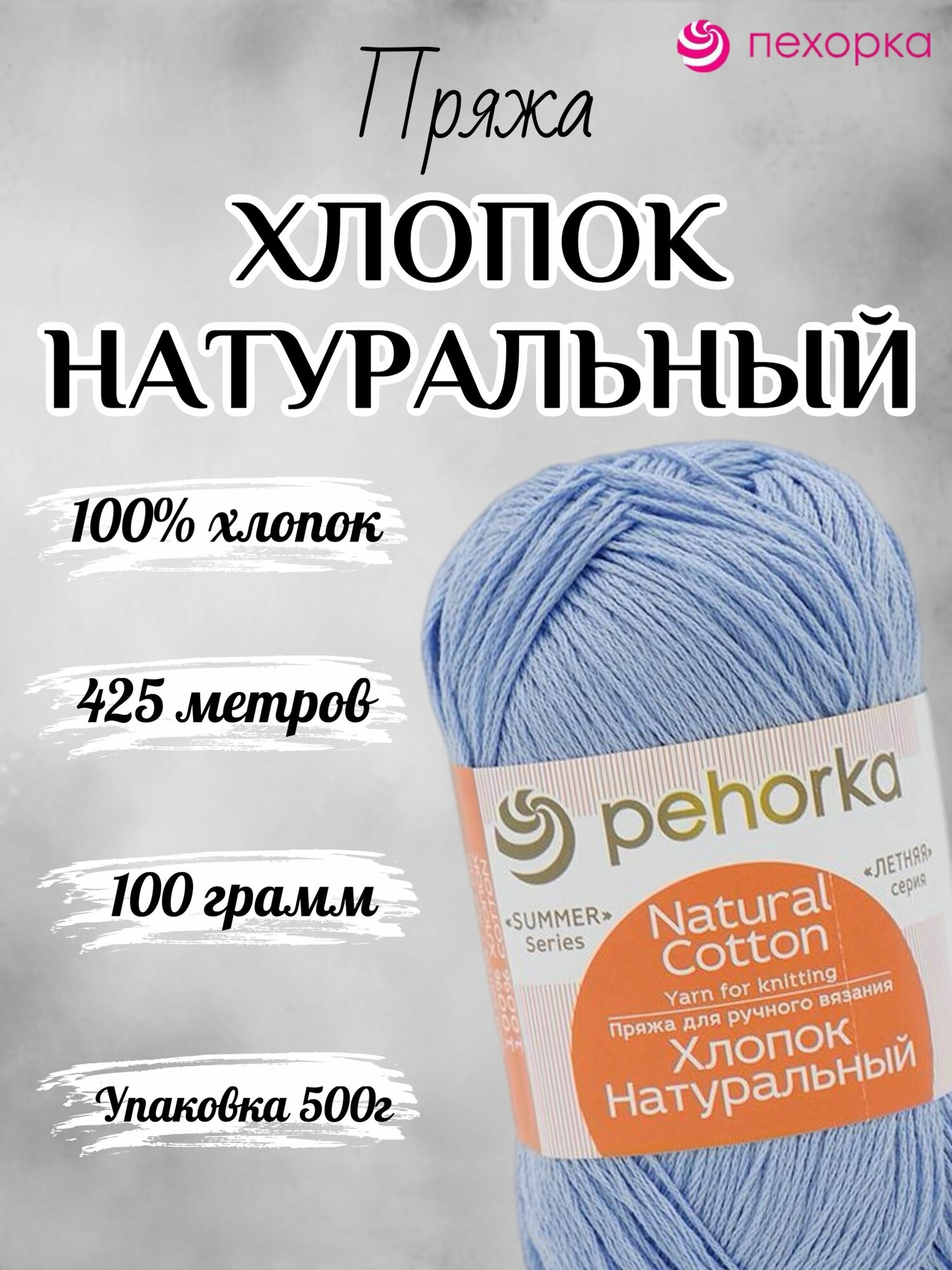 Летняя пряжа Хлопок натуральный 425м Пехорка, цвет 05 голубой, 5 мотков информация: