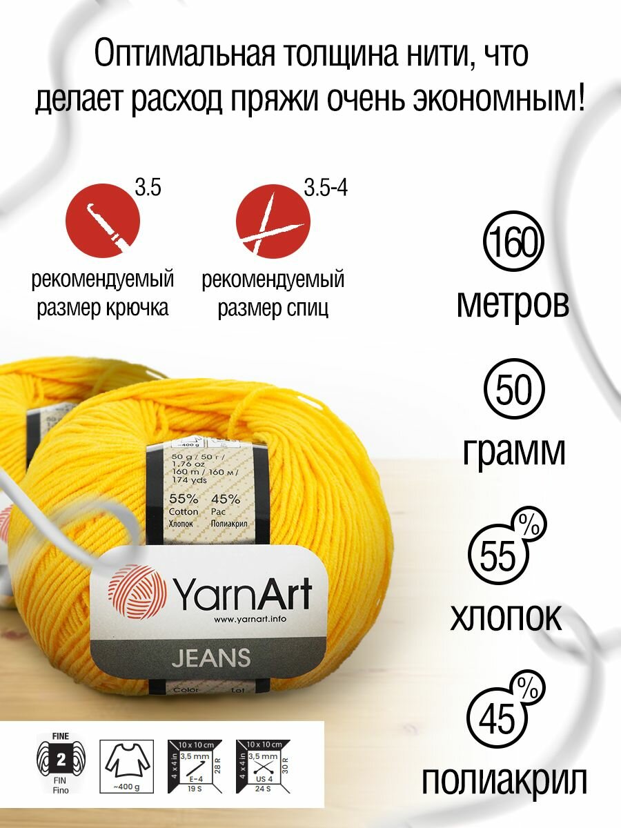 Пряжа для вязания YarnArt 'Jeans' 50г, 160м (55% хлопок, 45% полиакрил) (35 желтый), 10 мотков информация: