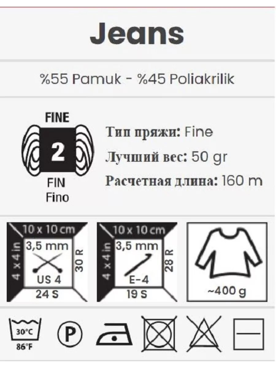 Пряжа YarnArt Jeans 77 - 2 шт, хлопковая 384 ₽