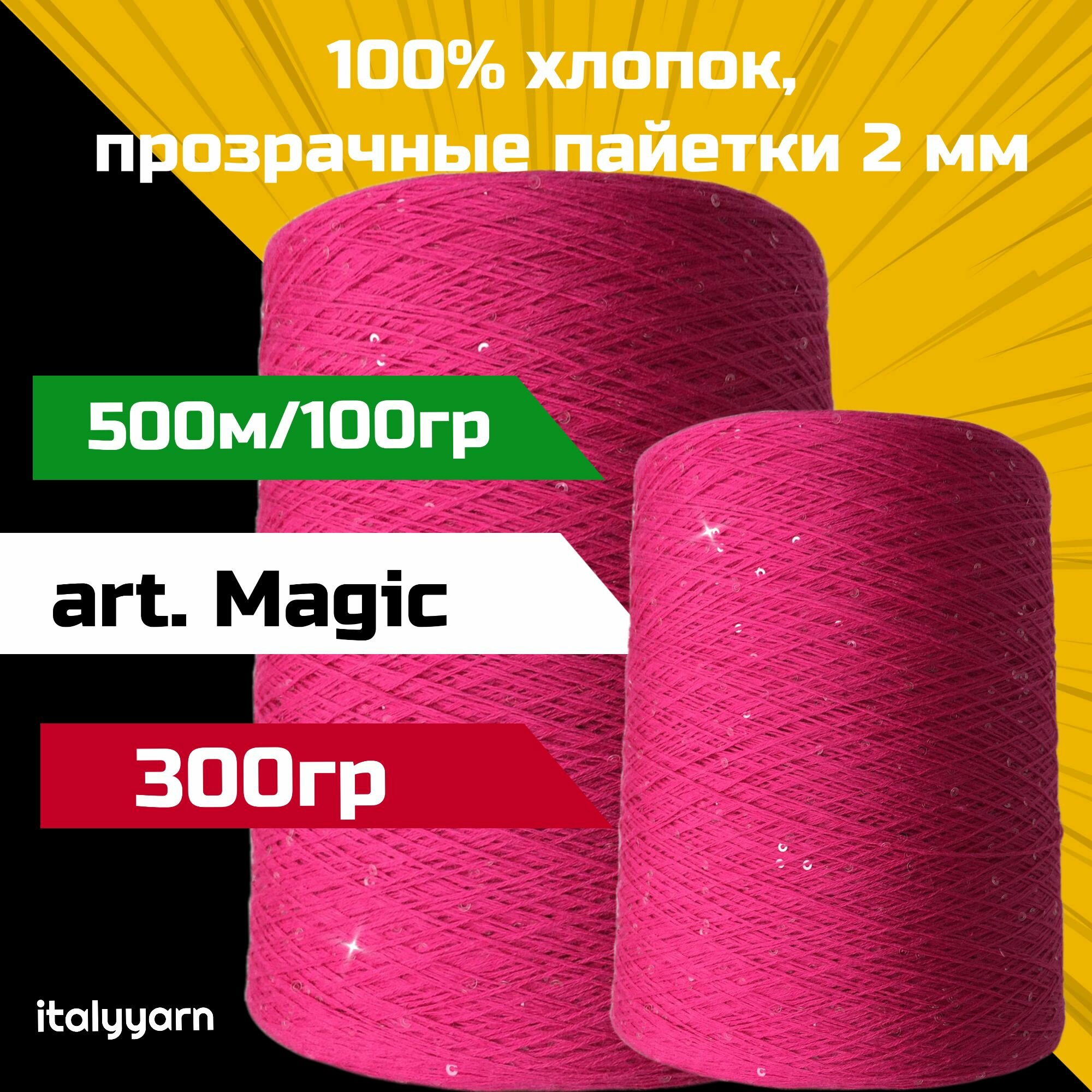 MAGIC; прозрачные пайетки 2мм на нити из 100% хлопка; 500м/100гр; вес: 300гр; italyyarn информация: