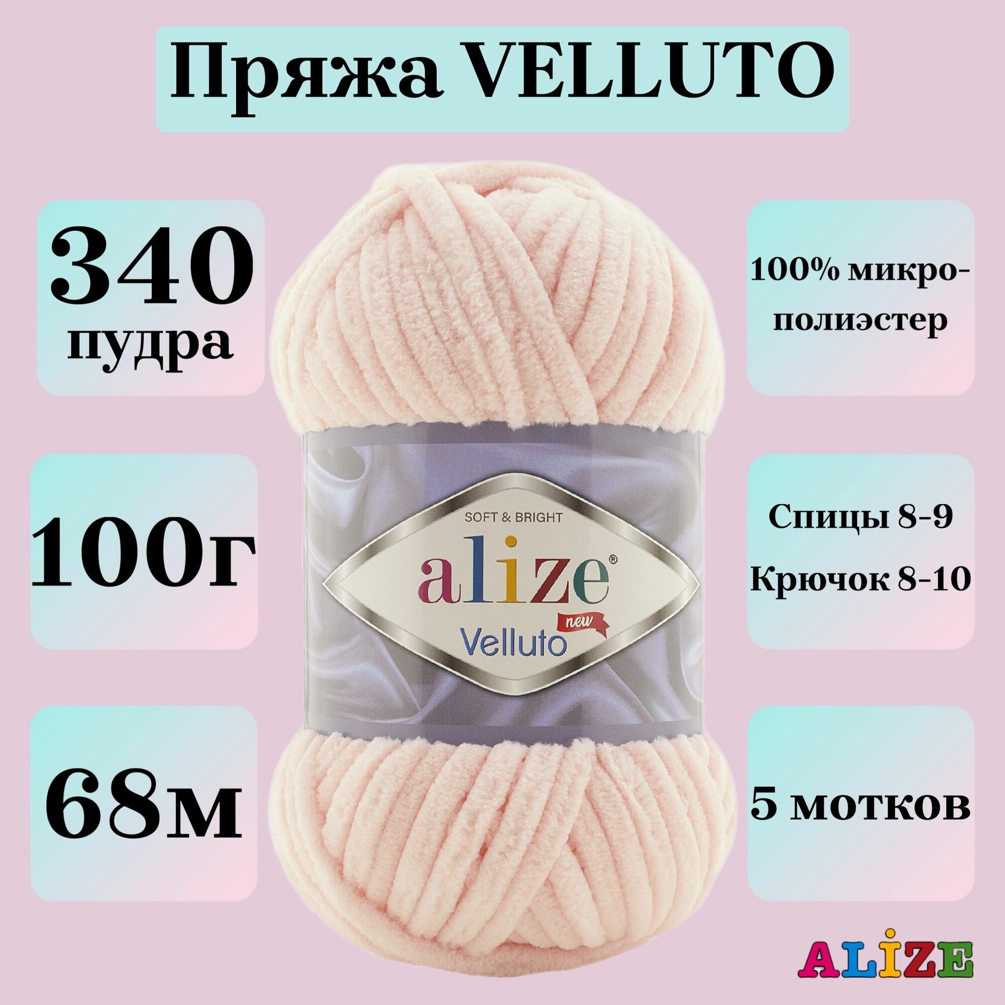 10 цен на Пряжа для вязания плюшевая Alize Velluto, цвет 340 светлая пудра, 100г, 68м, 5шт/упак
