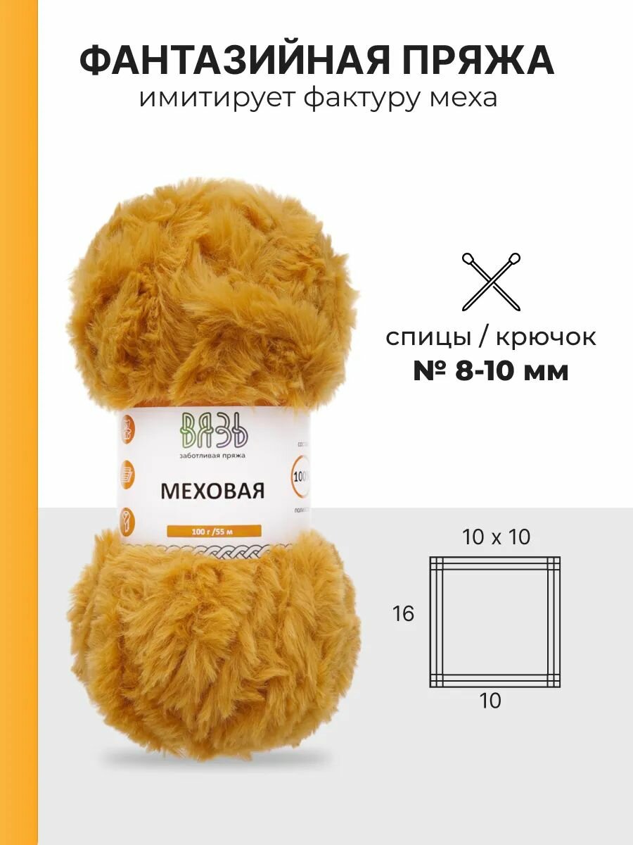 Пряжа для вязания Вязь 'Меховая' 100г, 55м (100% полиэстер) (13 горчичный), 3 мотка 740 ₽