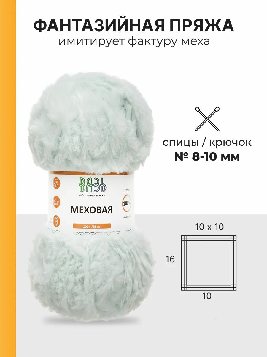 10 цен на Пряжа для вязания Вязь 'Меховая' 100г, 55м (100% полиэстер) (03 светлая мята), 3 мотка