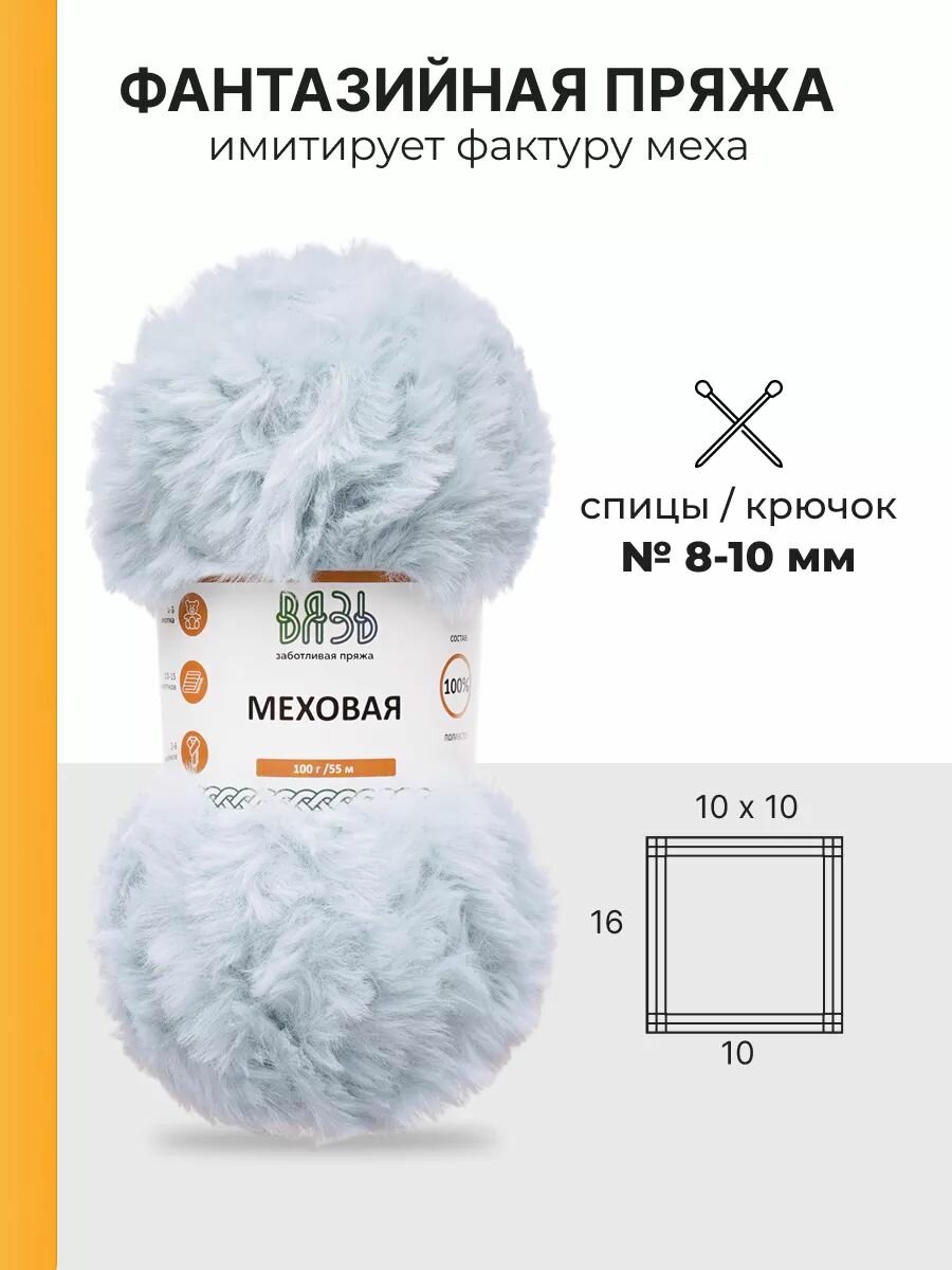 10 цен на Пряжа для вязания Вязь 'Меховая' 100г, 55м (100% полиэстер) (04 светло-голубой), 3 мотка