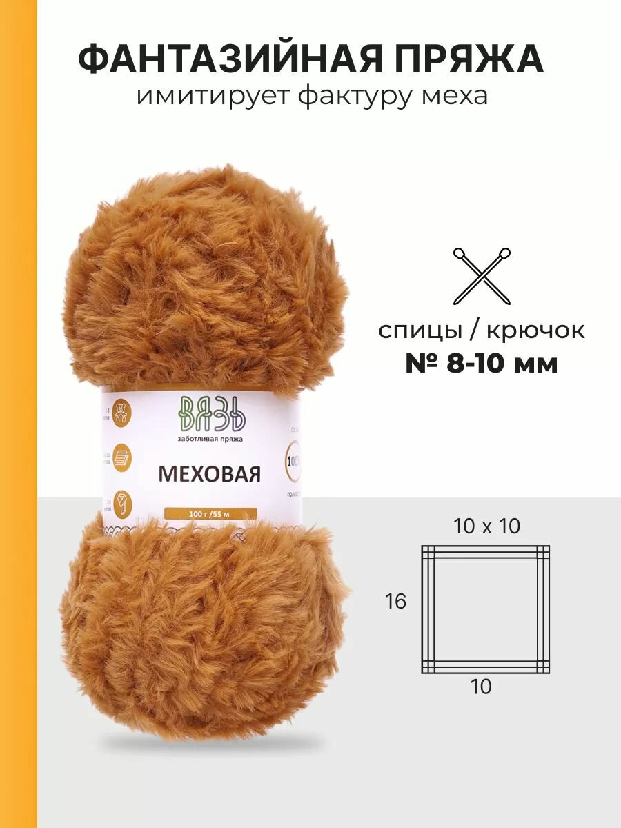 10 цен на Пряжа для вязания Вязь 'Меховая' 100г, 55м (100% полиэстер) (13 горчичный), 3 мотка