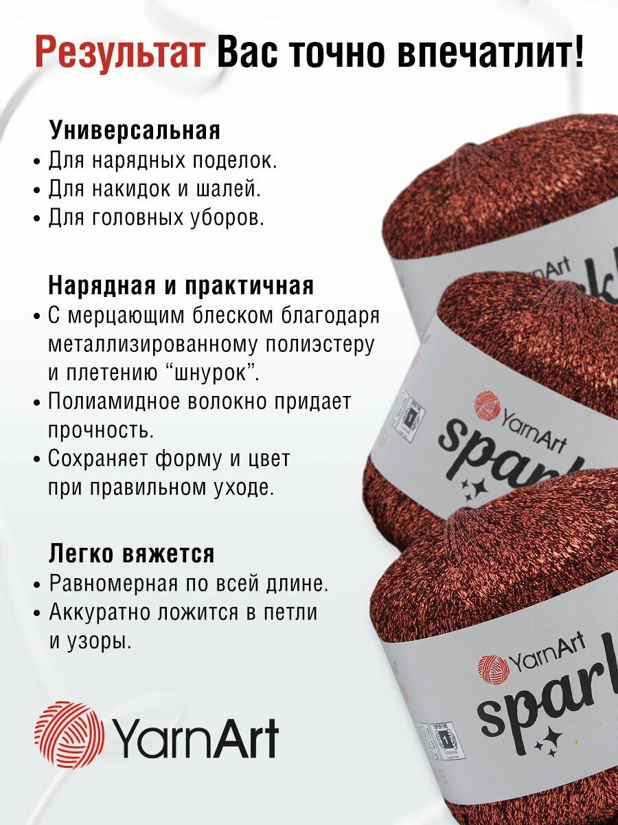 Пряжа YarnArt Sparkle Медный (1351) 1 моток 25 г/160 м (60% металлик, 40% полиамид) ярнарт спаркл 306 ₽