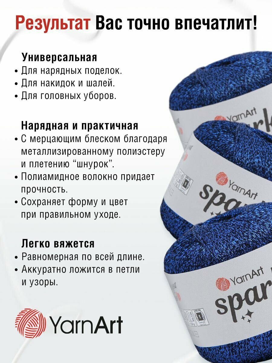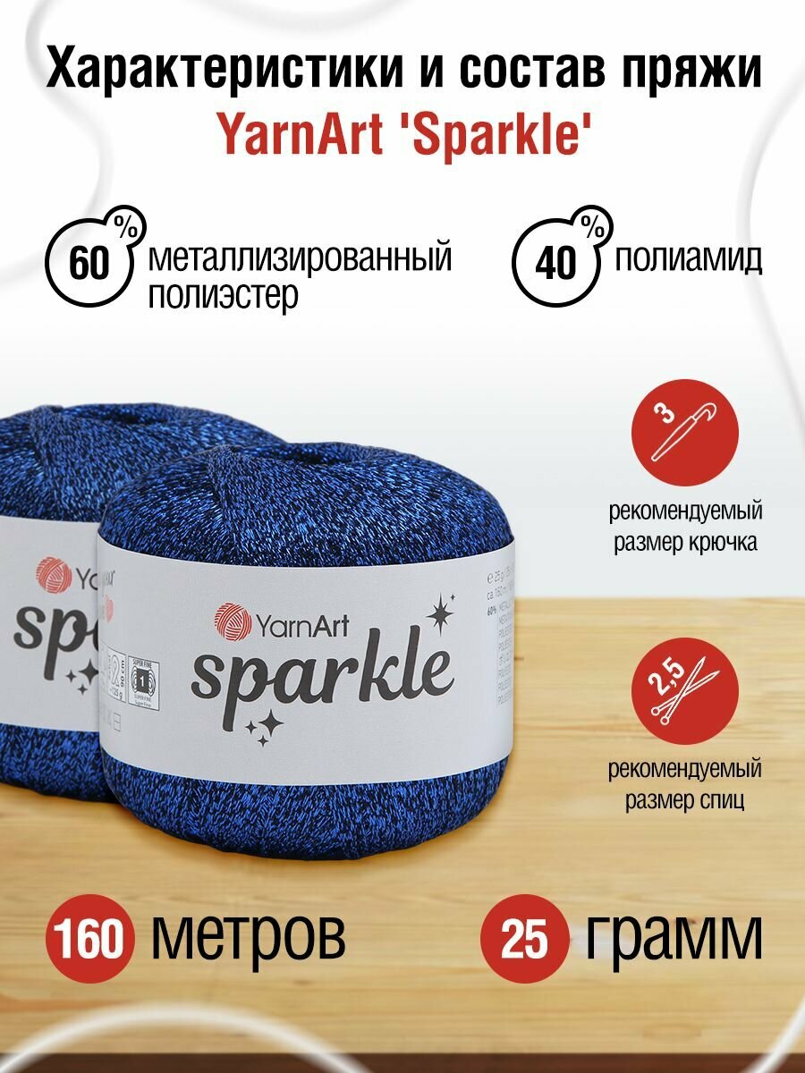 Пряжа для вязания YarnArt 'Sparkle' 25г, 160м (метализированный полиэстер, полиамид) (1324 ультрамарин), 6 шт информация:
