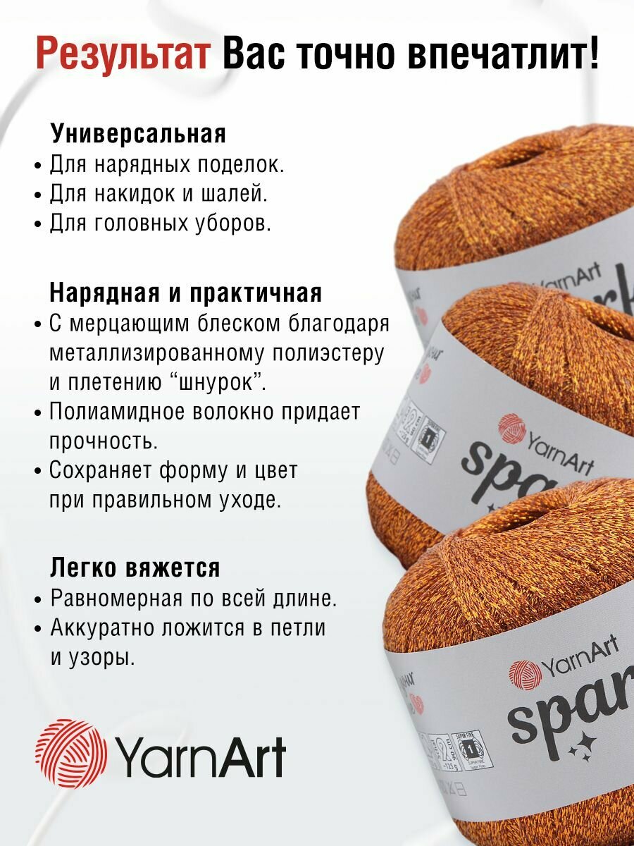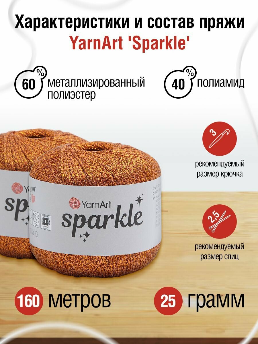 Пряжа для вязания YarnArt 'Sparkle' 25г, 160м (60% метализированный полиэстер, 40% полиамид) (1351 бронза), 6 мотков 793 ₽