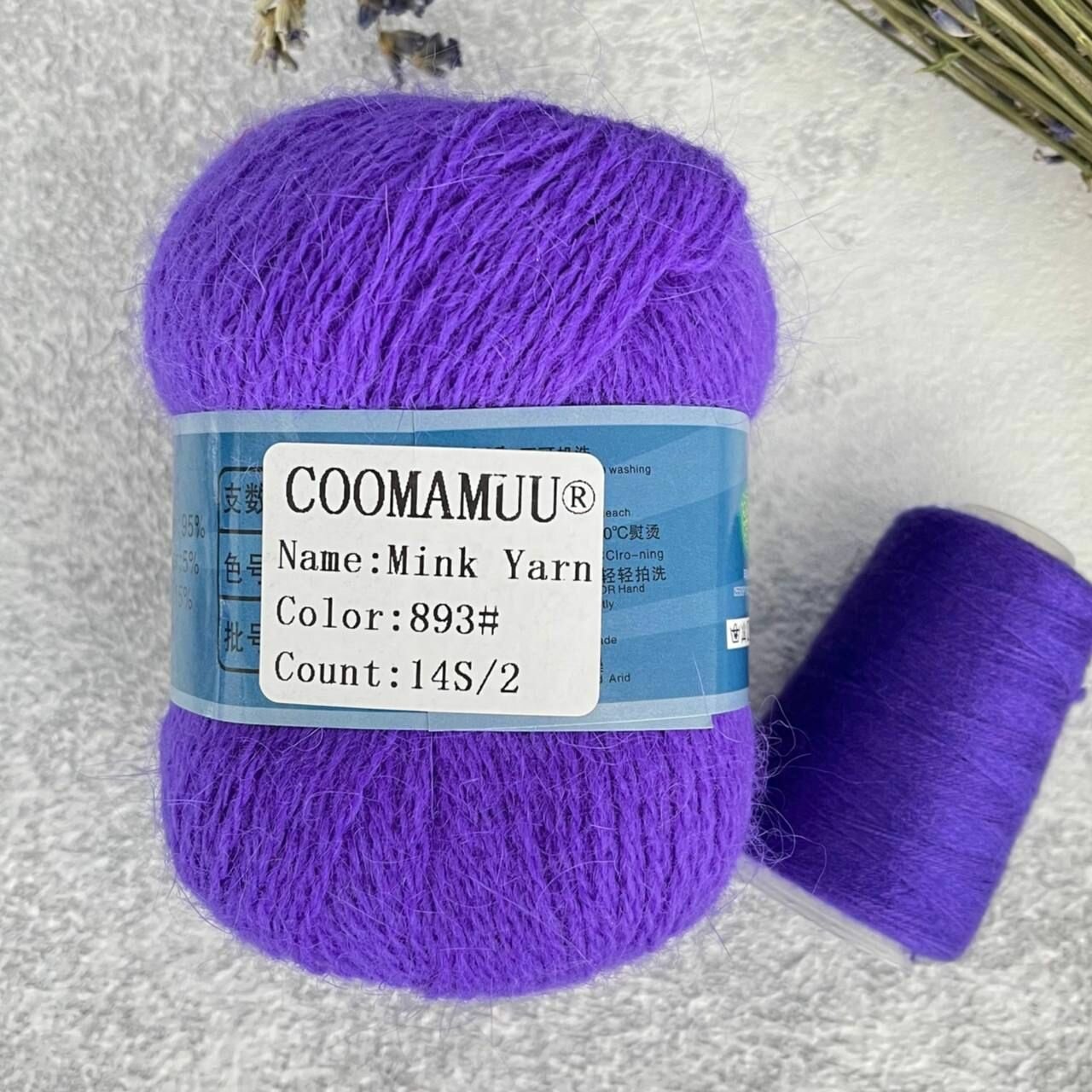 Пряжа пух норки цвет 893 фиалка, 1 моток+1 катушка дополнительной нити,350м/50гр, 90%пух норки,10%ПА информация: