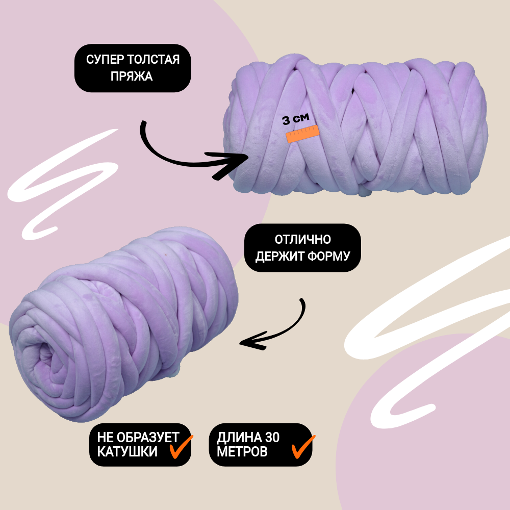 Трубчатая Толстая пряжа Бархат 1 кг для вязания руками. Толщина нити 3 см, оттенок лаванда информация: