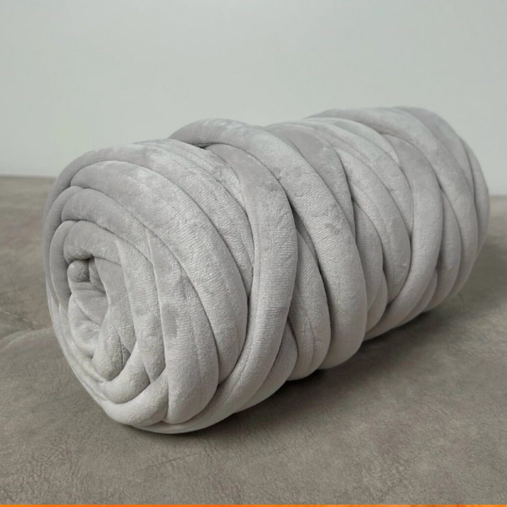 10 цен на Трубчатая Толстая пряжа Бархат 1 кг для вязания руками. Толщина нити 3 см, оттенок светло-серый