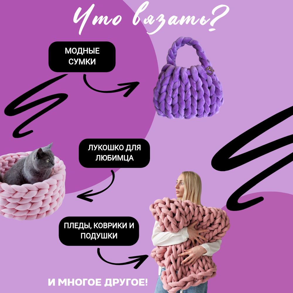 Трубчатая Толстая пряжа Бархат 1 кг для вязания руками. Толщина нити 3 см, оттенок лаванда 2 316 ₽