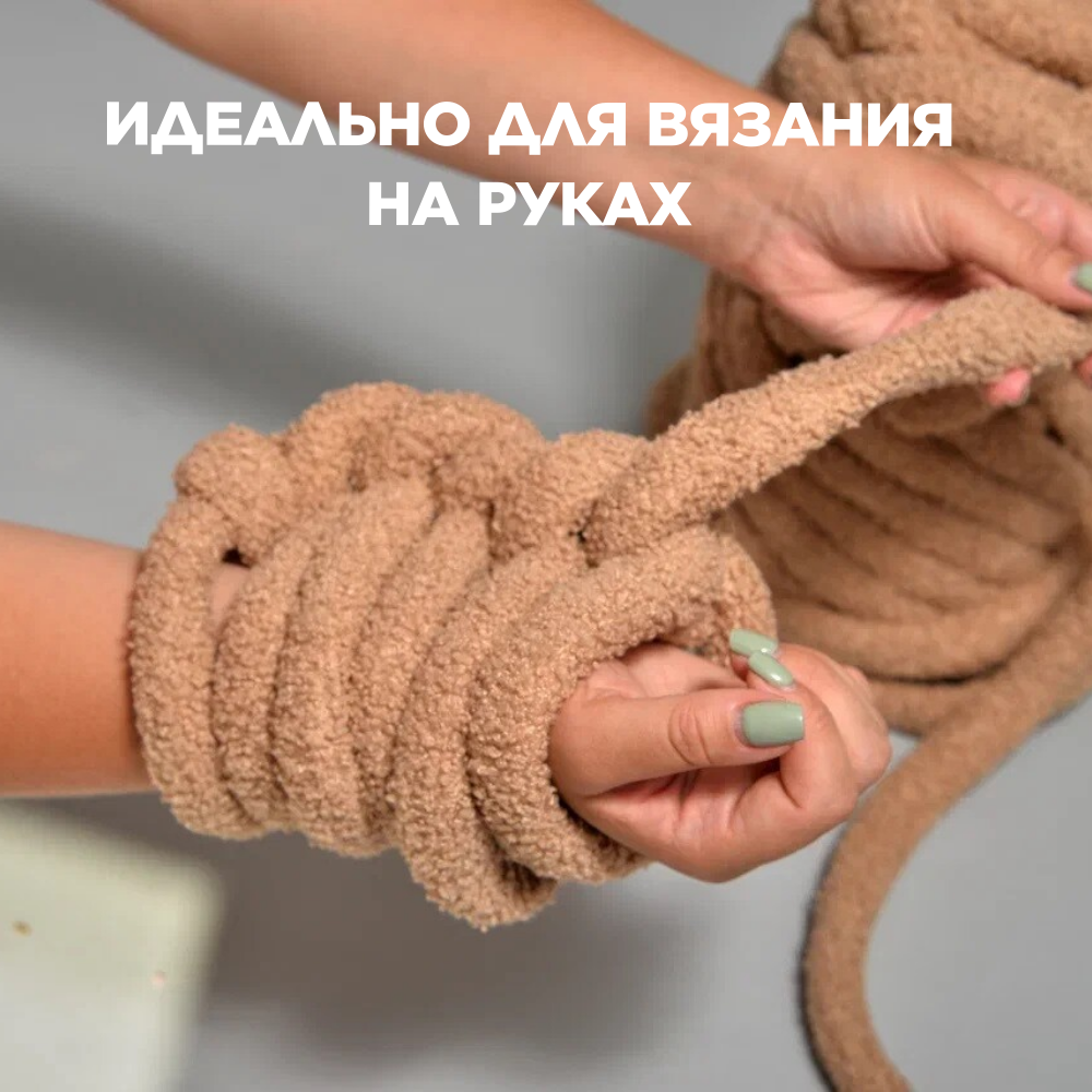 Трубчатая Толстая пряжа Букле 1 кг для вязания руками. Толщина нити 3 см, оттенок кофе с молоком 2 316 ₽