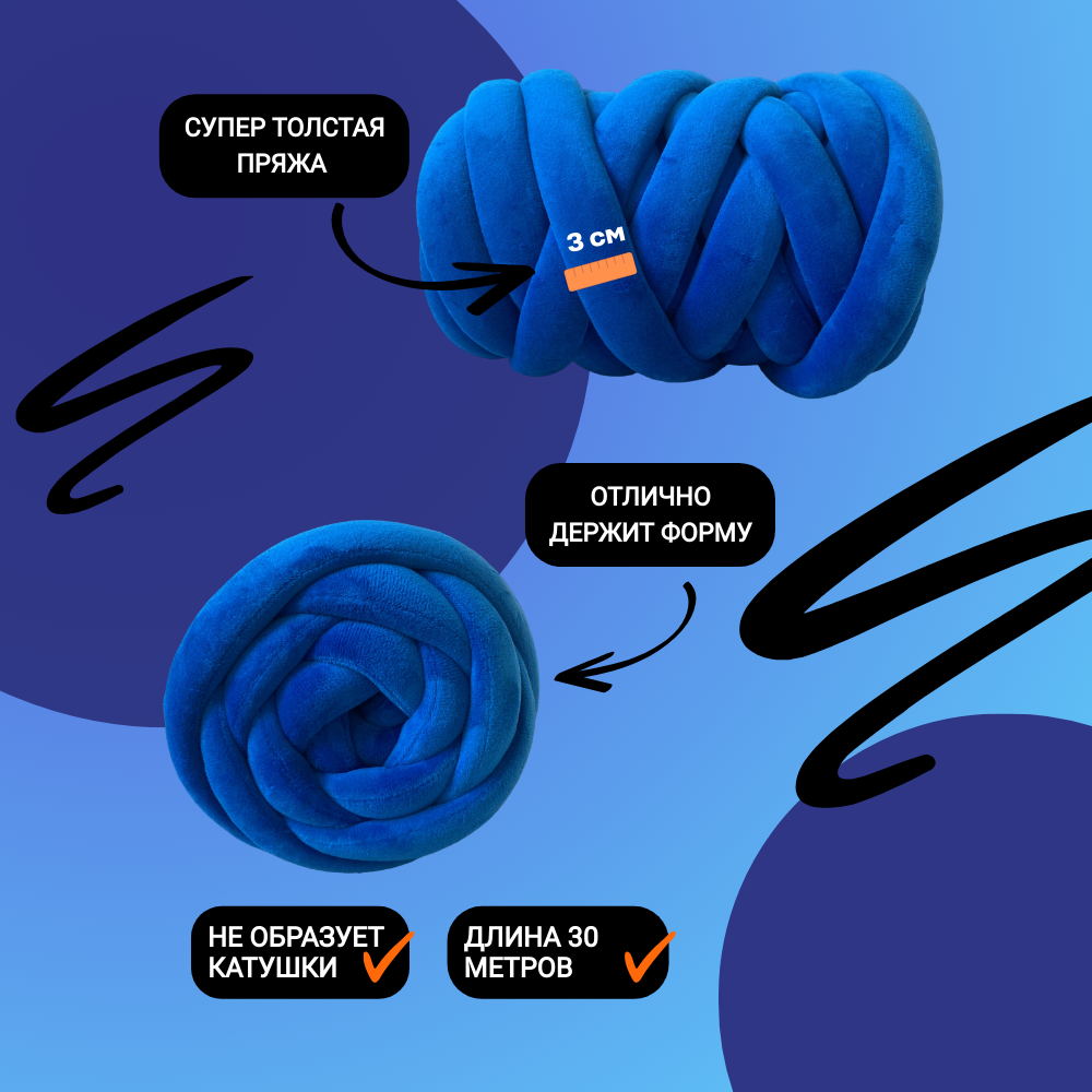 10 цен на Трубчатая Толстая пряжа Бархат 1 кг для вязания руками. Толщина нити 3 см, оттенок Сапфир