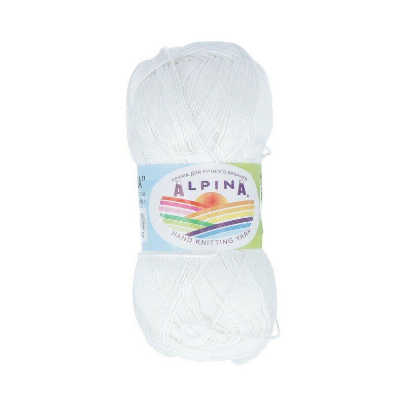 10 цен на Пряжа ALPINA "XENIA" 100% мерсеризованный хлопок 50 г 240 м №001 белый