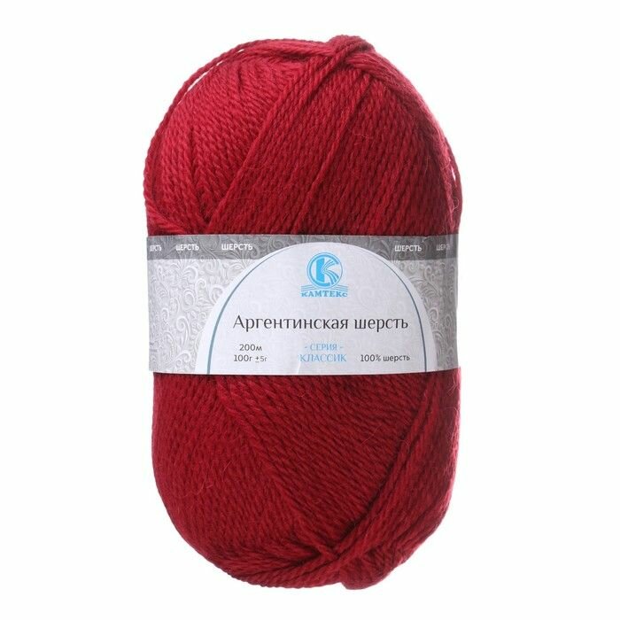 Пряжа Камтекс "Аргентинская шерсть", 100% импортная полутонкая шерсть, 200 м/100 гр, (091 вишня) информация:
