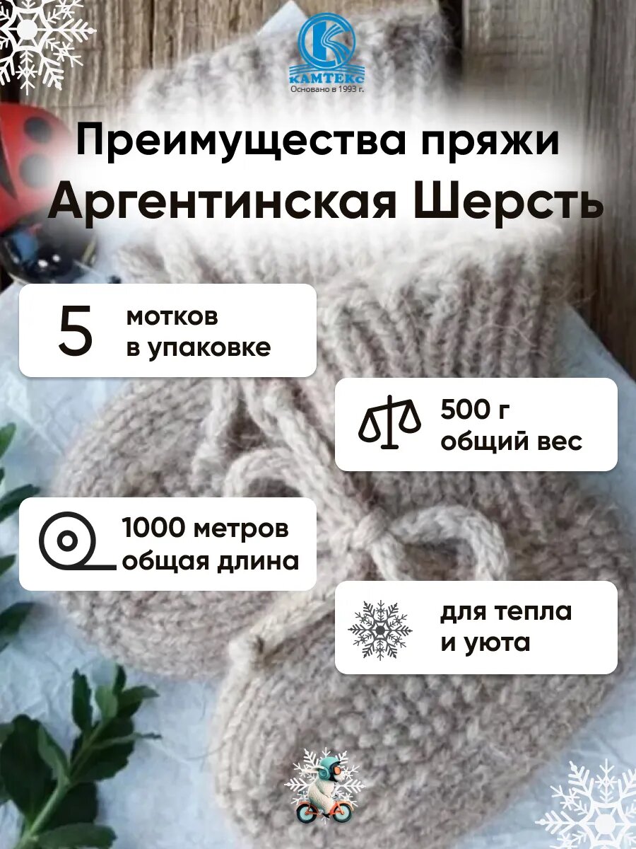 Пряжа для вязания спицами, крючком "Камтекс. Аргентинская шерсть", 100% импортная полутонкая шерсть 200 м/100 г, 397 ₽