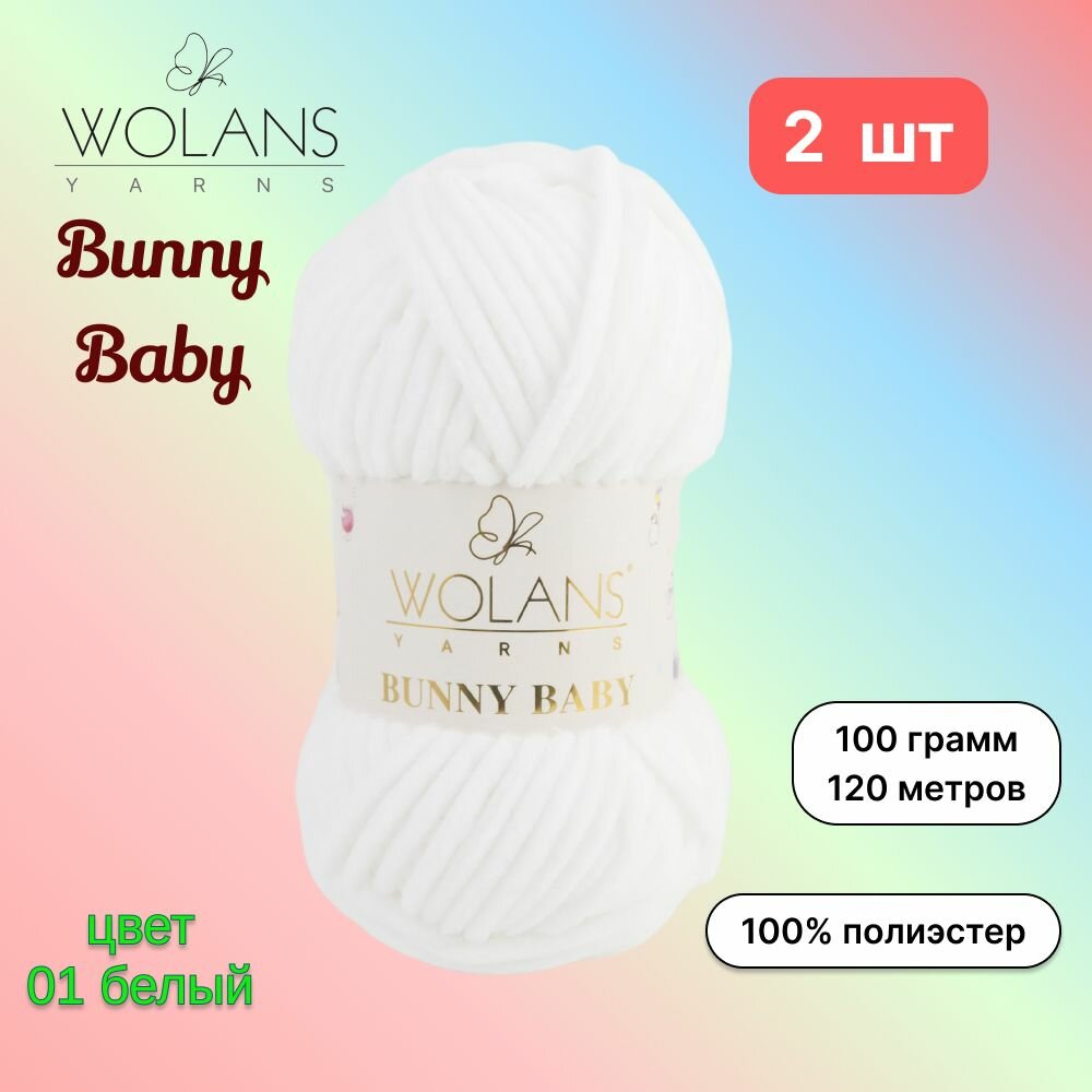 Пряжа Wolans Bunny Baby Белый (01) 2 мотка 100 г/120 м (100% микрополиэстер) воланс банни беби информация: