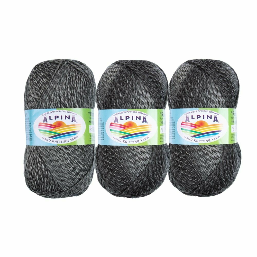 Пряжа ALPINA "ROMANTIC" 100% шерсть 100 г 300 м №15 белый-т. серый