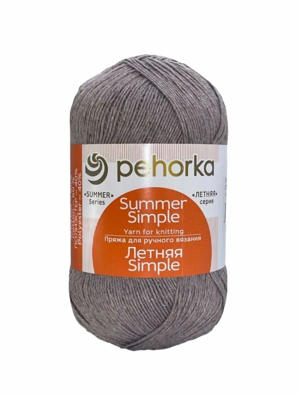 Пряжа Пехорка Летняя Simple Серо-бежевый (274) 5 мотков 100 г/500 м (60% хлопок, 40% полиэстер) летняя симпл информация: