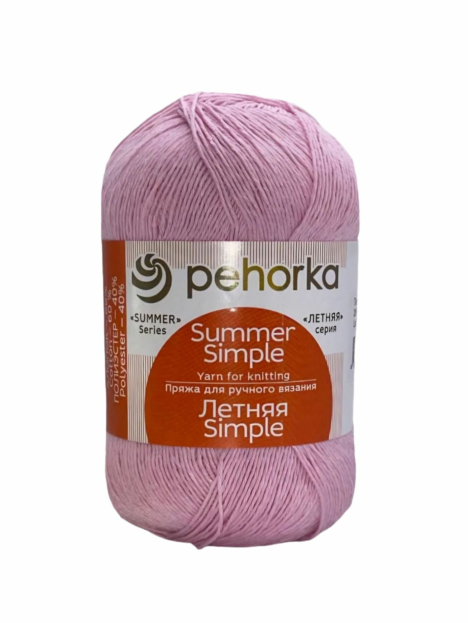 Пряжа Пехорка Летняя Simple Светлая бегония (180) 1 моток 100 г/500 м (60% хлопок, 40% полиэстер) летняя симпл 259 ₽