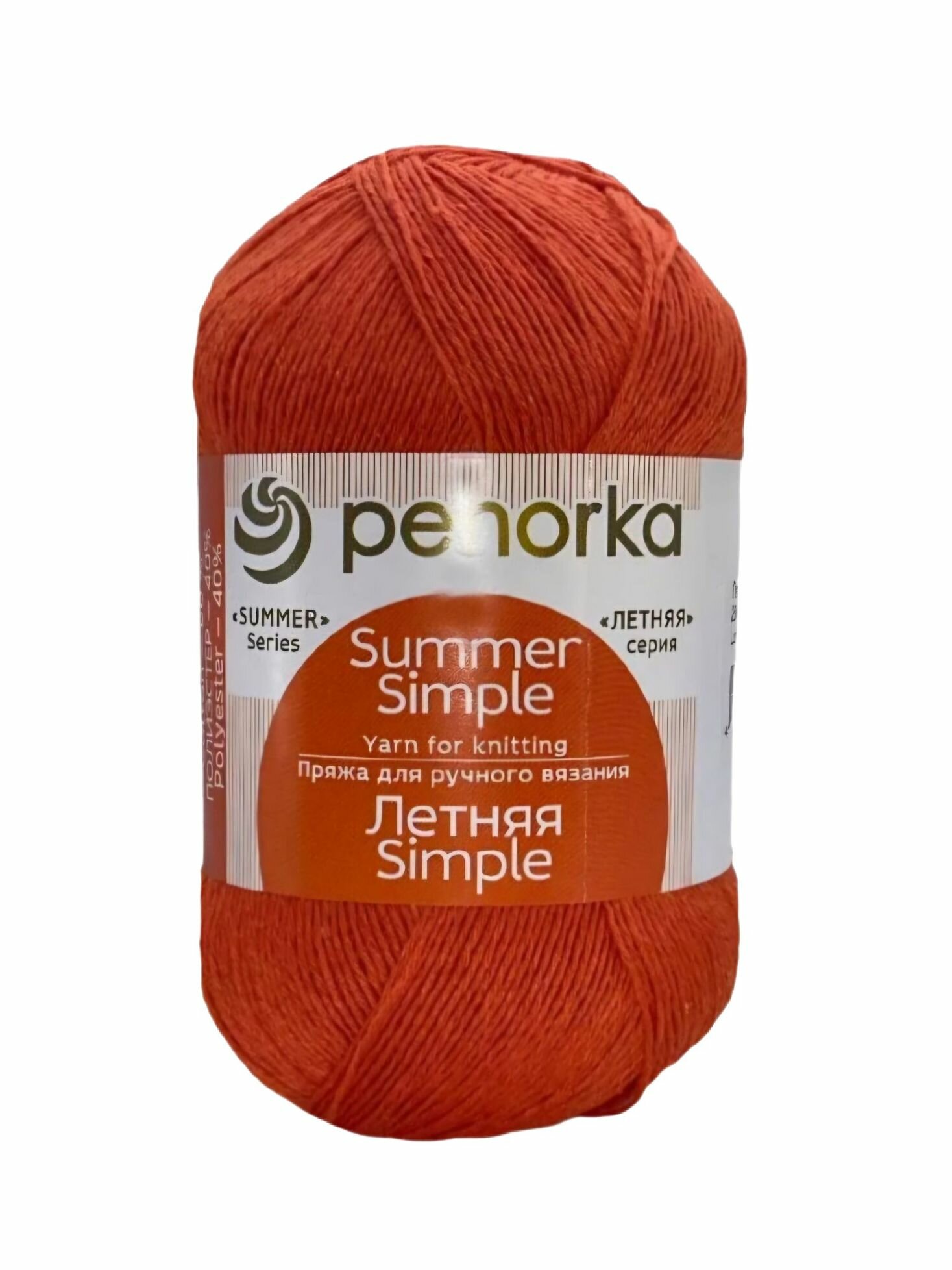 Пряжа Пехорка Летняя Simple Оранжевый (284) 1 моток 100 г/500 м (60% хлопок, 40% полиэстер) летняя симпл 259 ₽