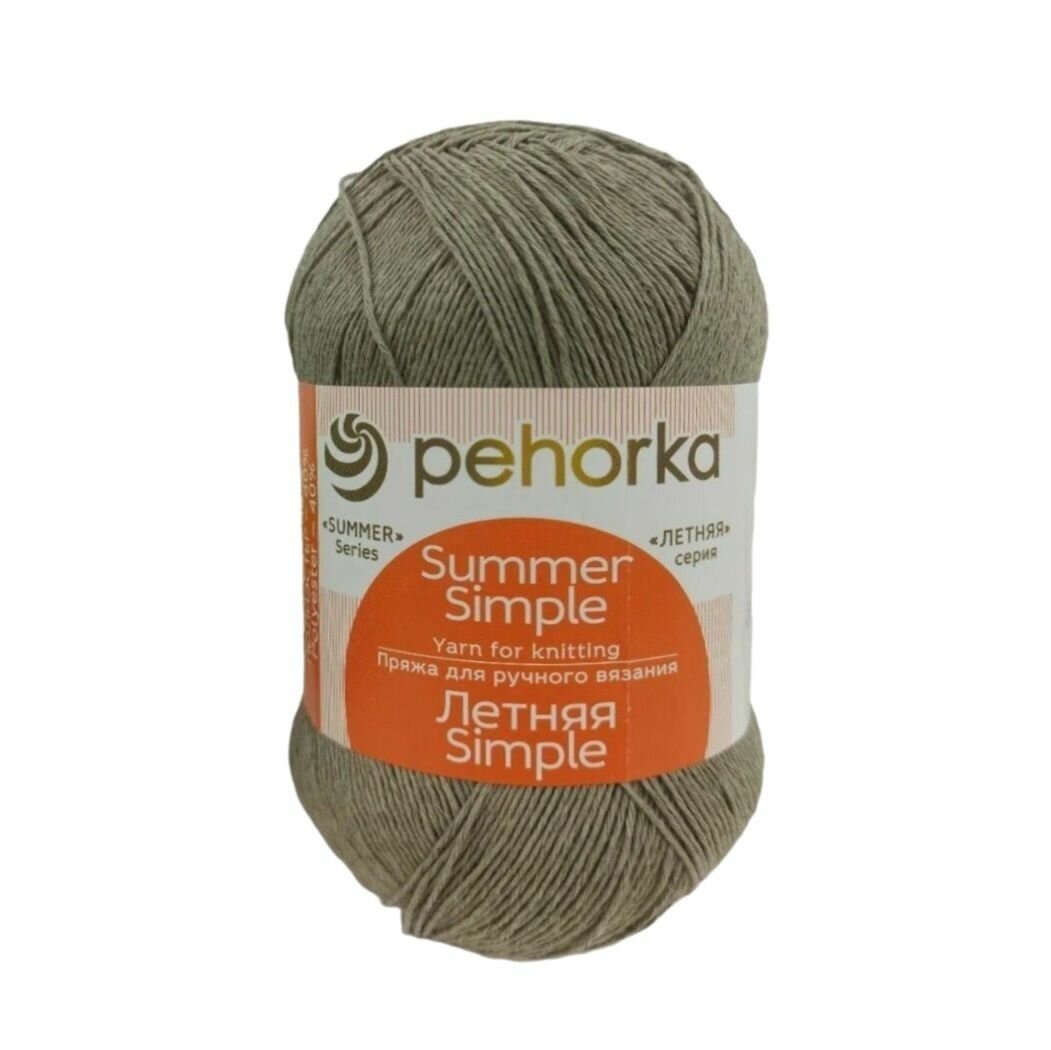 Пряжа Пехорка Летняя Simple Серо-бежевый (274) 1 моток 100 г/500 м (60% хлопок, 40% полиэстер) летняя симпл 259 ₽