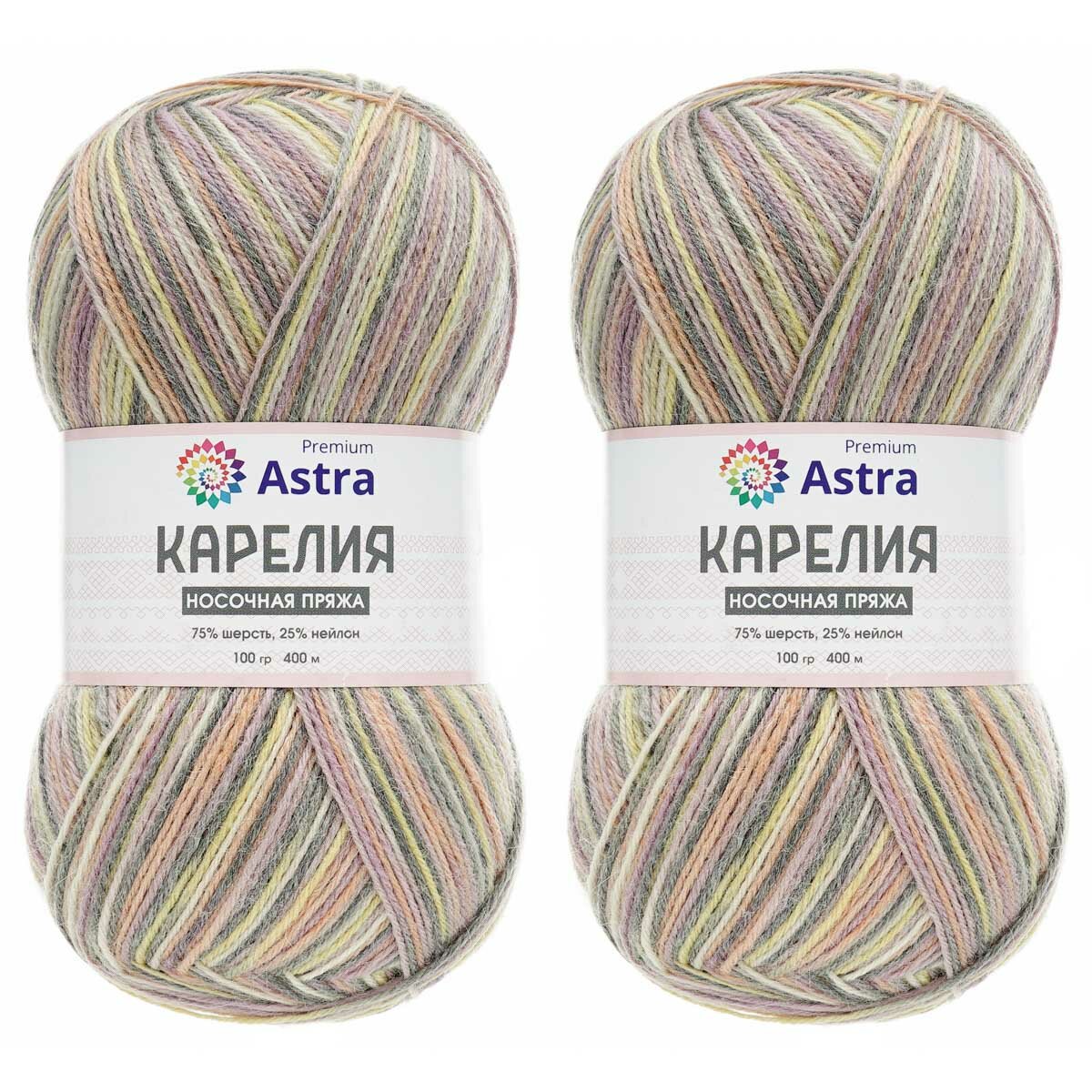 10 цен на Пряжа для вязания Astra Premium 'Карелия' носочная, 100г, 400м (75% шерсть, 25% нейлон) (1003), 2 мотка