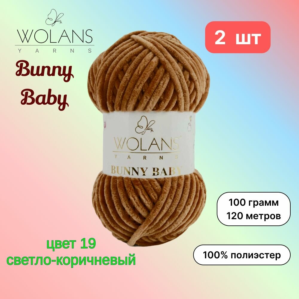 Пряжа Wolans Bunny Baby Светло-коричневый (19) 2 мотка 100 г/120 м (100% микрополиэстер) воланс банни беби информация: