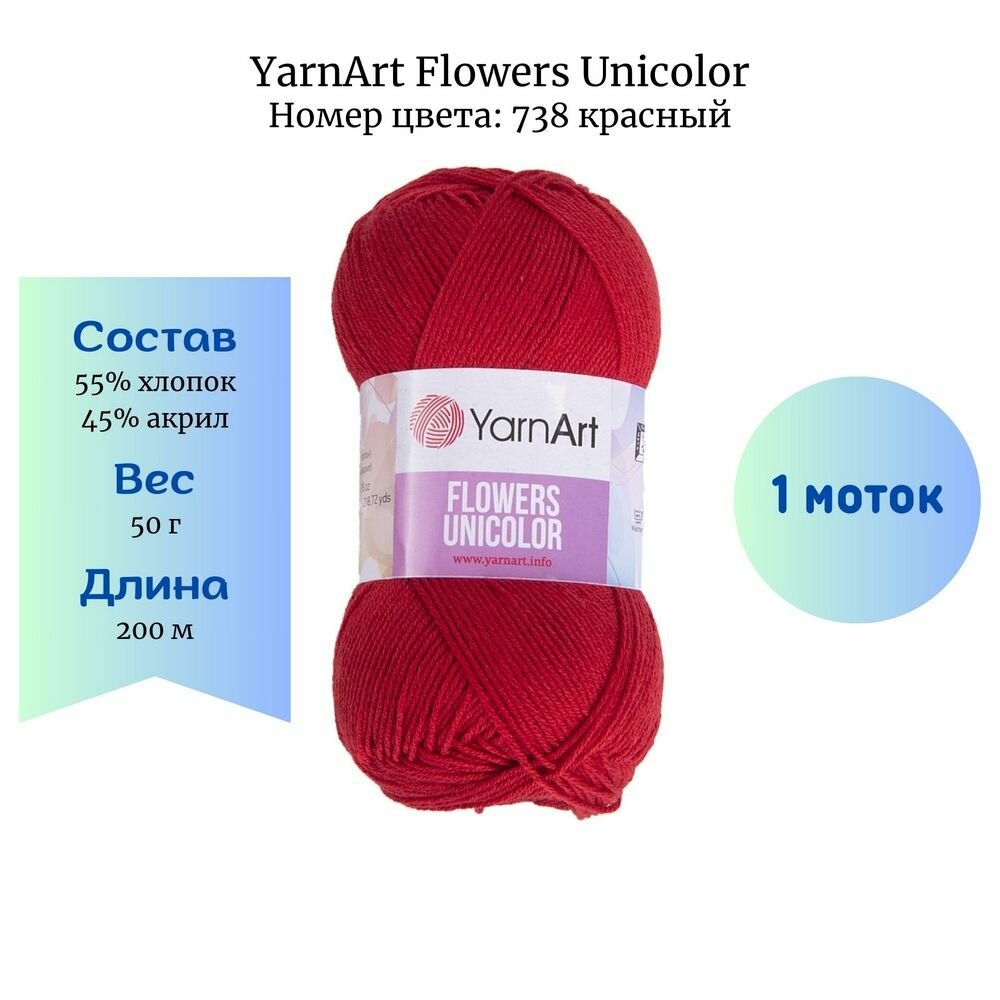 Пряжа для вязания YarnArt Flowers Unicolor 738 красный 1 моток 50 гр/200 м 55% хлопок, 45% акрил информация: