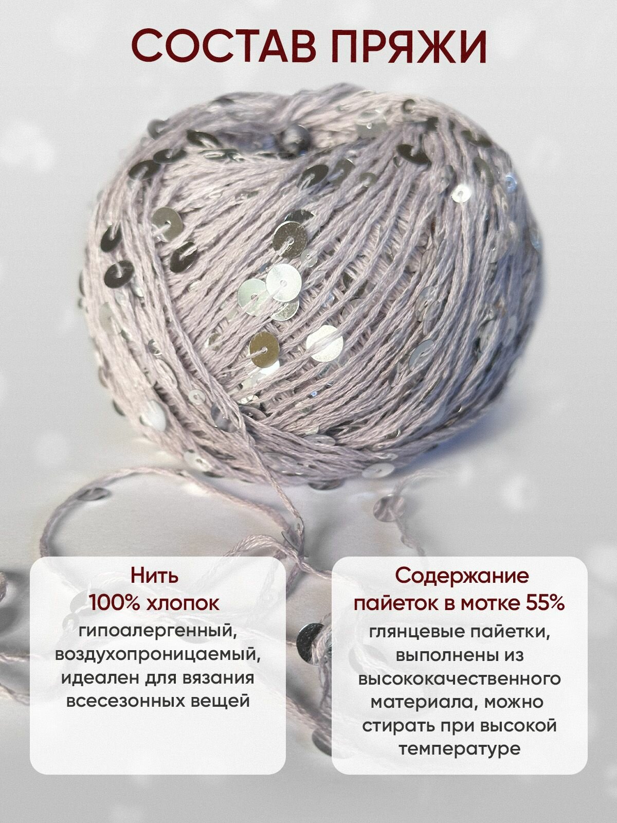 Отзывы на Пряжа Овца БеБе Let's Glow, с пайетками, фиалковая, хлопок, 100г