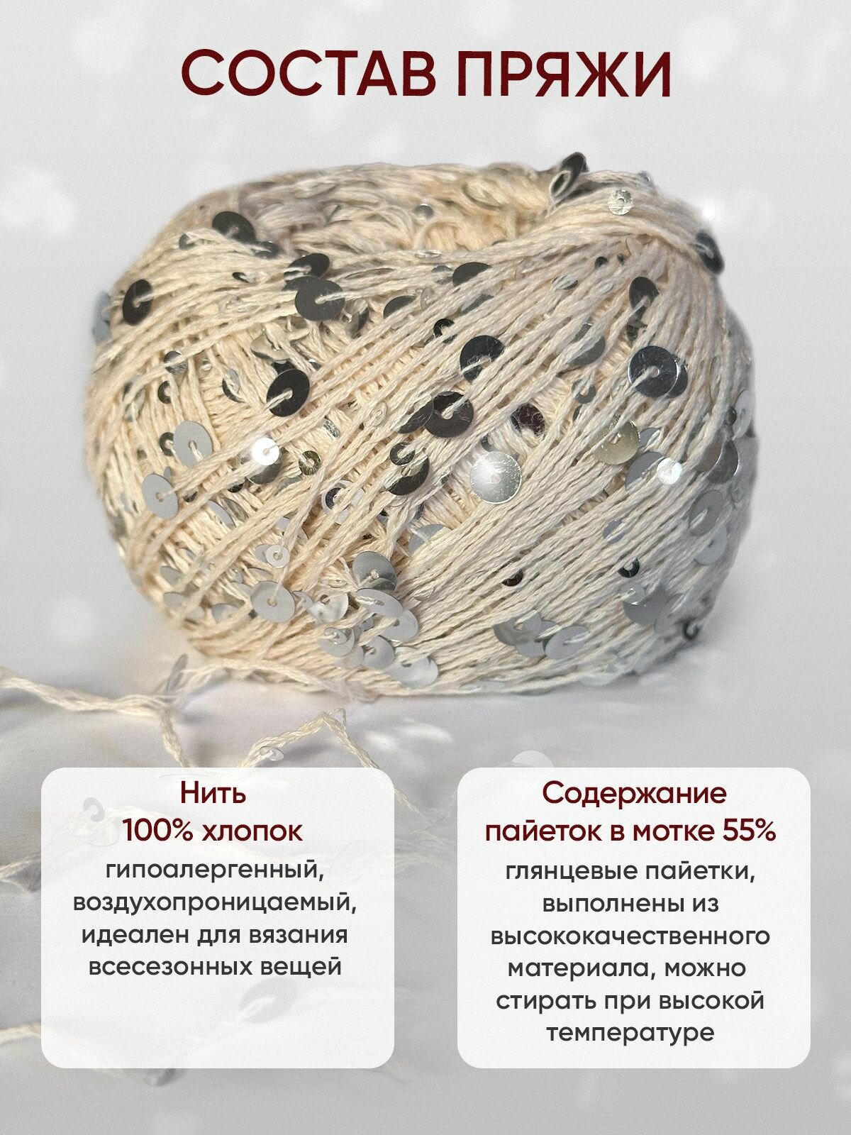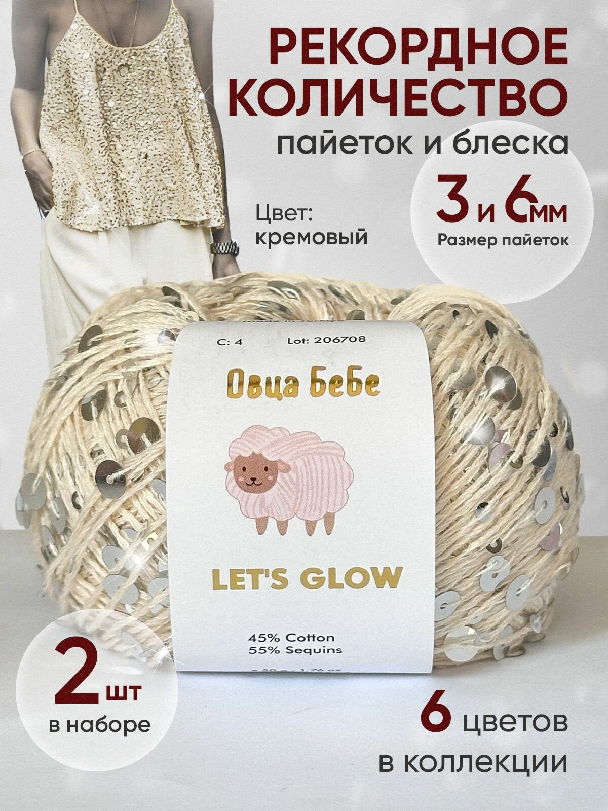 Отзывы на Пряжа для вязания с пайетками Let's Glow, цвет кремовый (набор из 2шт)
