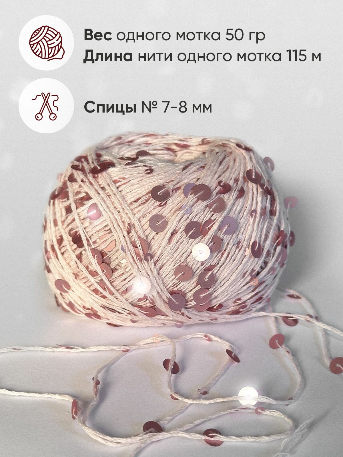 Пряжа для вязания с пайетками"Let's Glow" Овца БеБе, хлопок, бежевая, 2 мотка 1 423 ₽