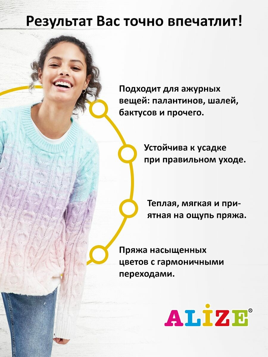 Пряжа для вязания ALIZE 'Angora Gold Batik', 100г, 550м (80% акрил, 20% шерсть), ТУ (4741 секционный), 5 мотков 1 136 ₽