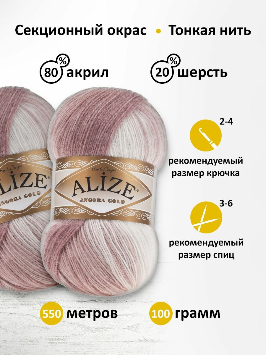 Пряжа Alize Angora Gold Batik: 1984, 2 шт 550 м 100 г, 20% шерсть, 80% акрил 577 ₽