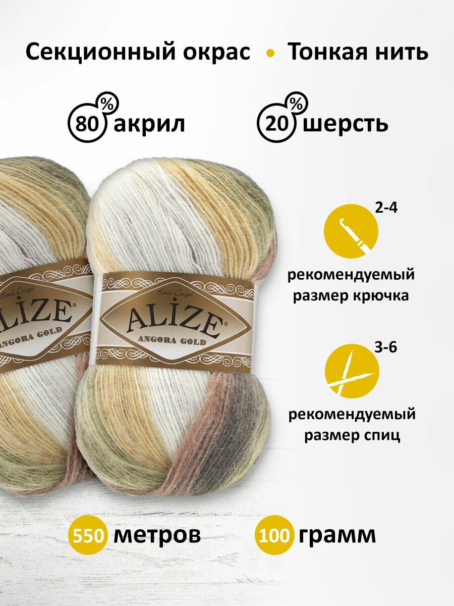 Пряжа для вязания ALIZE 'Angora Gold Batik', 100г, 550м (80% акрил, 20% шерсть), ТУ (1893 секционный), 5 мотков информация: