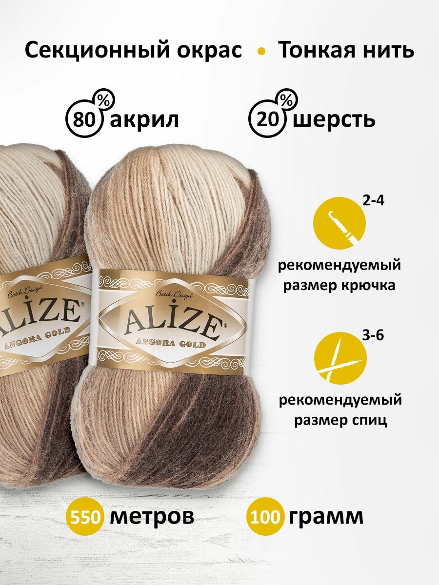 Пряжа ALIZE ANGORA GOLD BATIK, корич-св. корич-бел - 2626, 20% шерсть, 80% акрил, 5 мотков, 100 г, 550 м.