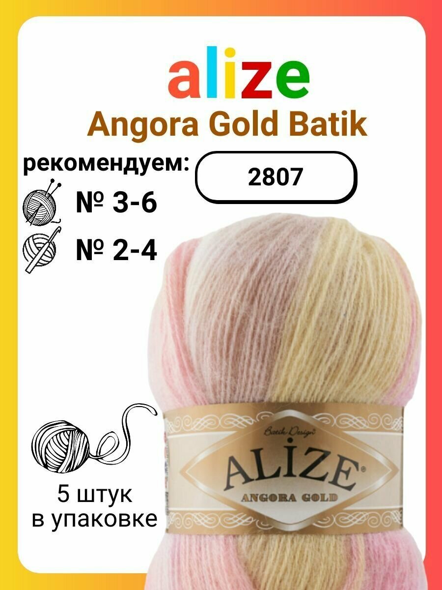 Пряжа для вязания Alize Angora Gold Batik 2807, 100 г, 550 м, 5 штук информация: