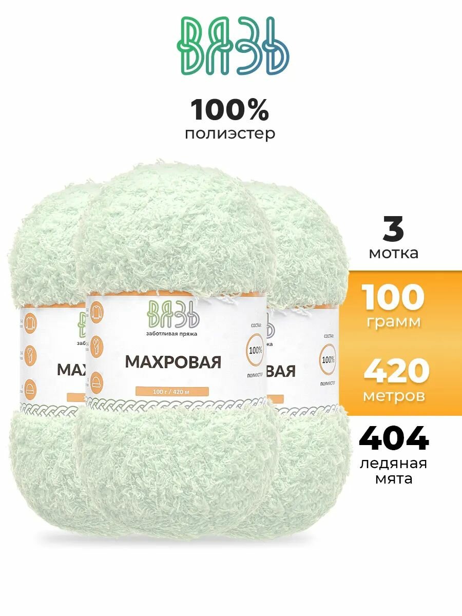 Пряжа для вязания Вязь 'Махровая' 100г, 420м (100% полиэстер) (404 ледяная мята), 3 мотка информация: