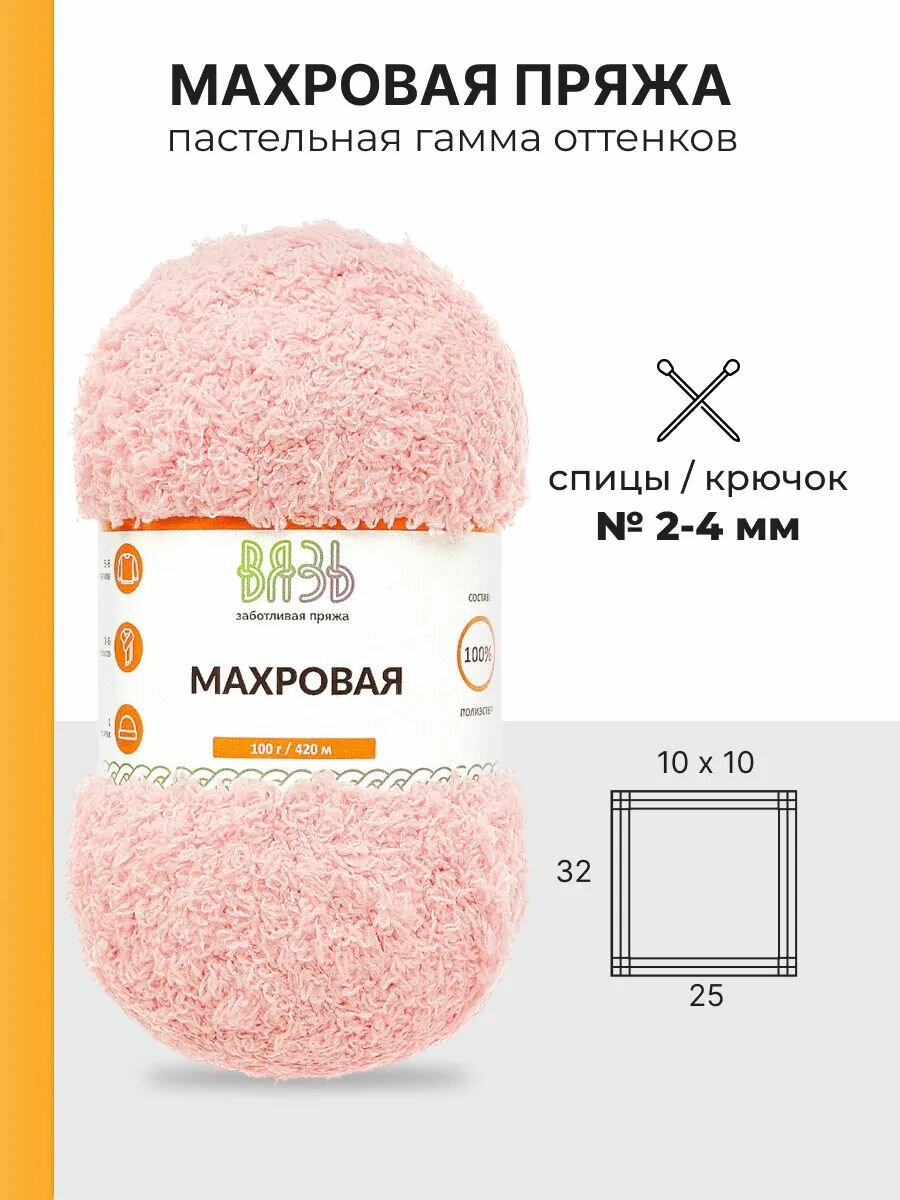 Отзывы на Пряжа для вязания Вязь 'Махровая' 100г, 420м (100% полиэстер) (113 розовый), 3 мотка