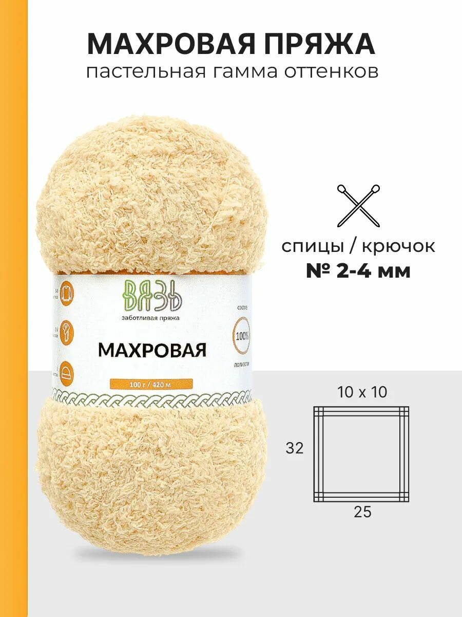 Отзывы на Пряжа для вязания Вязь 'Махровая' 100г, 420м (100% полиэстер) (808 бежевый), 3 мотка