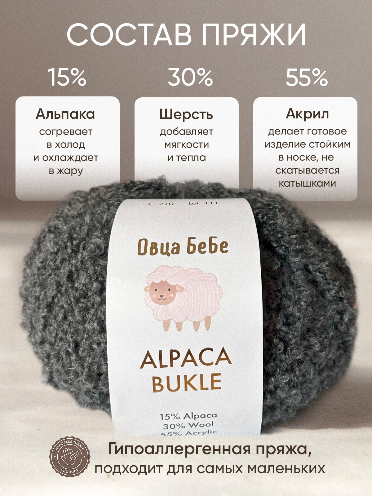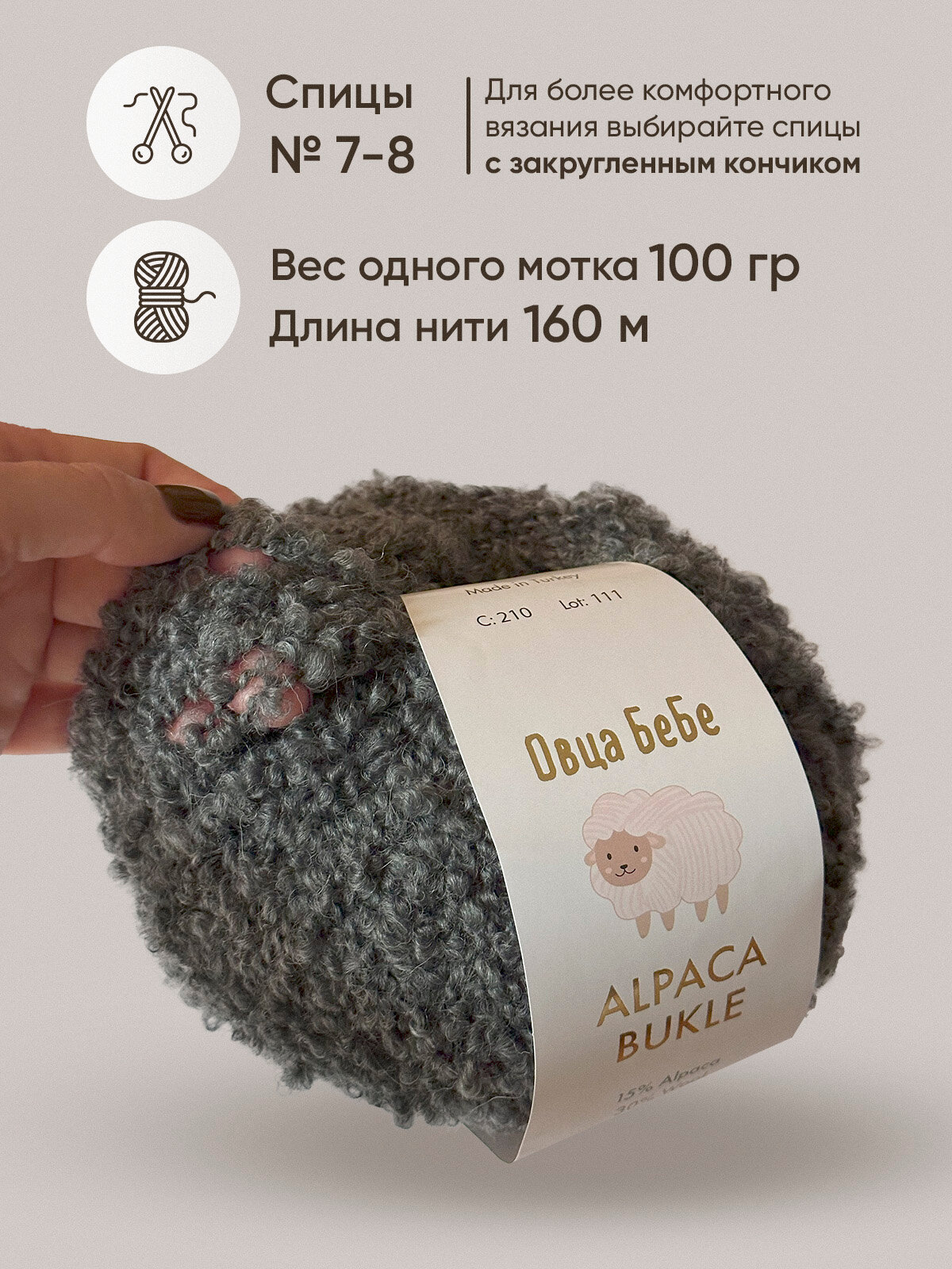 10 цен на Пряжа для вязания Буклированная Alpaca Bukle, цвет графитовый (100г - 1шт)