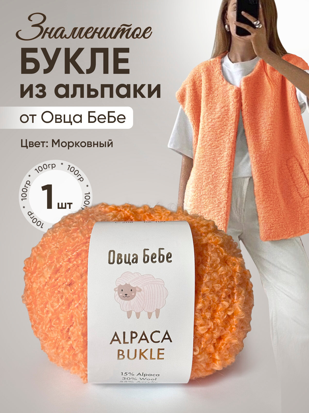 Отзывы на Пряжа для вязания Буклированная Alpaca Bukle, цвет морковный (100г - 1шт)