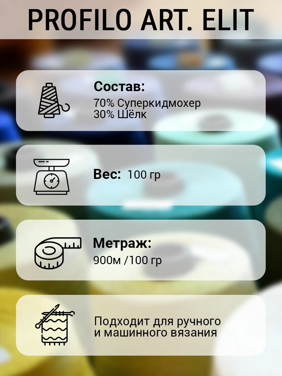 Пряжа PROFILO art. ELIT 70% Суперкидмохер 30% Шёлк 100 гр. Италия информация:
