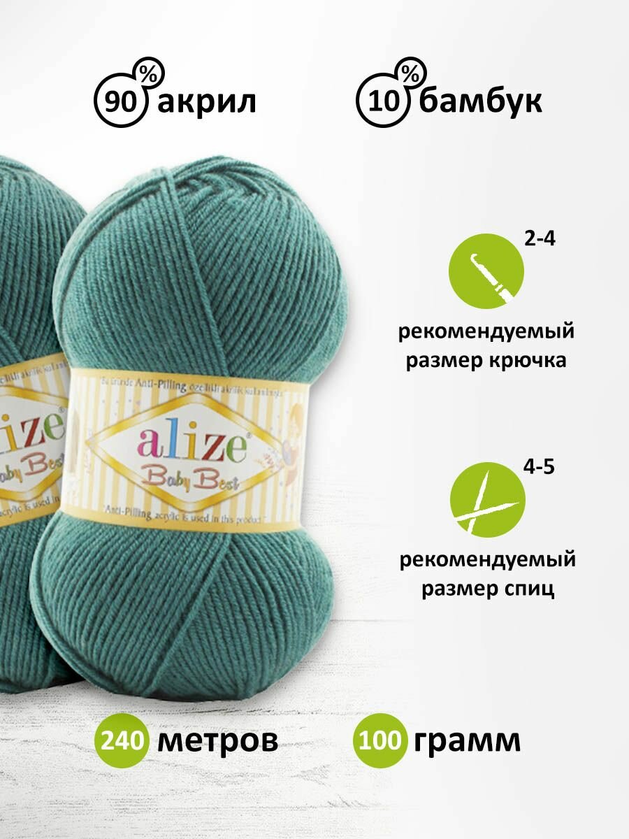 Пряжа для вязания ALIZE 'Baby Best', 100г, 240м (10% бамбук, 90% акрил) Антипиллинг (847 птичьи перья), 5 мотков информация: