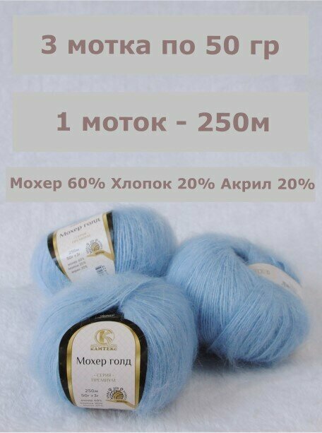 Пряжа Мохер Голд от Камтекс. Цвет голубой. 3 шт*50г/250 м информация: