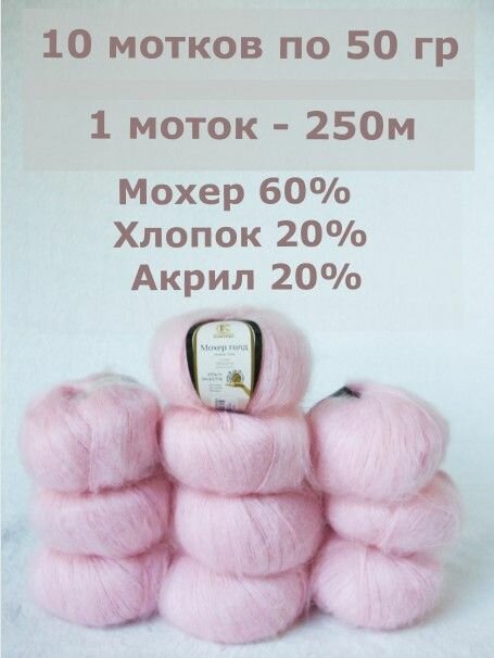 Пряжа для вязания Камтекс 'Мохер голд' 50г, 250м (60% мохер, 20% хлопок, 20% акрил) (231 жемчужная роза), 10 мотков 2 392 ₽