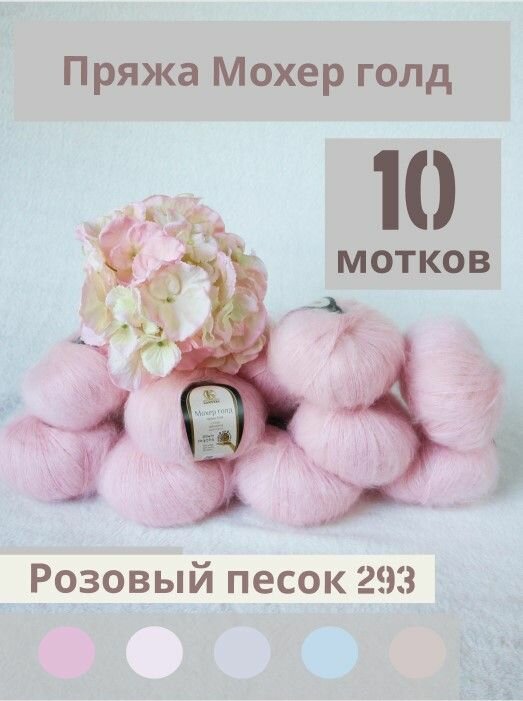 10 цен на Пряжа Мохер Голд от Камтекс. Цвет розовый песок 293, 10 шт*50г/250 м