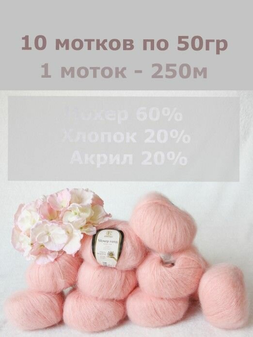 Пряжа для вязания Камтекс 'Мохер голд' 50г, 250м (60% мохер, 20% хлопок, 20% акрил) (231 жемчужная роза), 10 мотков 2 392 ₽