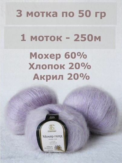 10 цен на Пряжа Мохер Голд от Камтекс. Цвет лаванада 072, 3 шт*50г/250 м